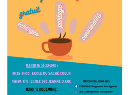 l’EVS vient à l’école à la rencontre des parents. mardi 16 décembre de 8h30 à 9h à école du Sacré-Cœur mardi 16 décembre de 16h30 à 17h à école Sainte-Jeanne d’Arc jeudi 18 décembre de 8h30 à 9h à école François-Marie Luzel, maternelle vendredi 19......