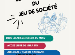 L’EVS organise un après-midi jeu de société tous les 1er mercredis du mois de 14h à 17h, en accueil libre. Venez à Ti ar re Yaouank, partager un moment convivial animé par Charlotte ! Ouvert à tous. Renseignements : 06 51 36 46 78 ou saintthe.spor...